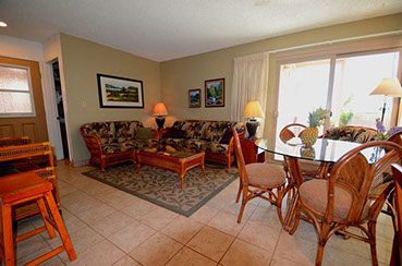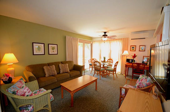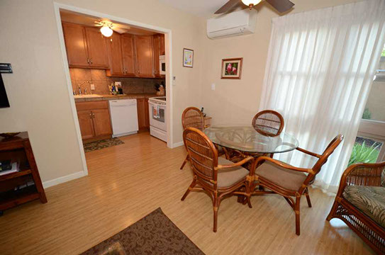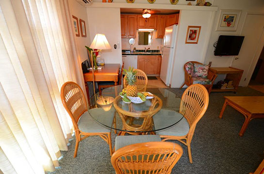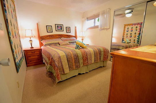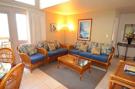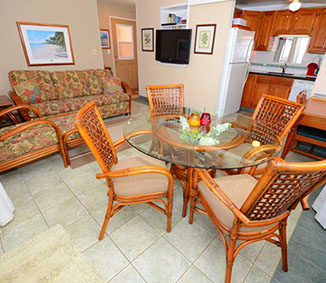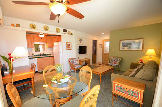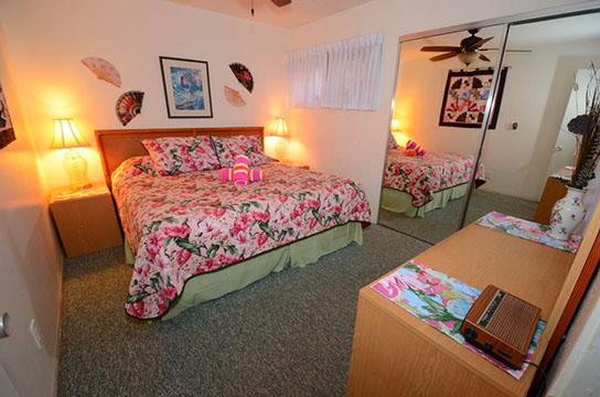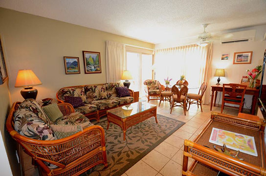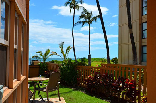 Condo A4 is a 1-bedroom, Ocean View condo on ground level at Kihei Sands Condominiums. It has a Queen bed in the bedroom and non-sleeper sofa in living room.