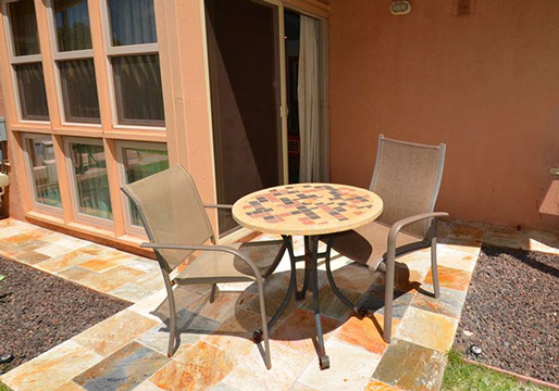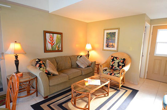Condo A4 is a 1-bedroom, Ocean View condo on ground level at Kihei Sands Condominiums. It has a Queen bed in the bedroom and non-sleeper sofa in living room.